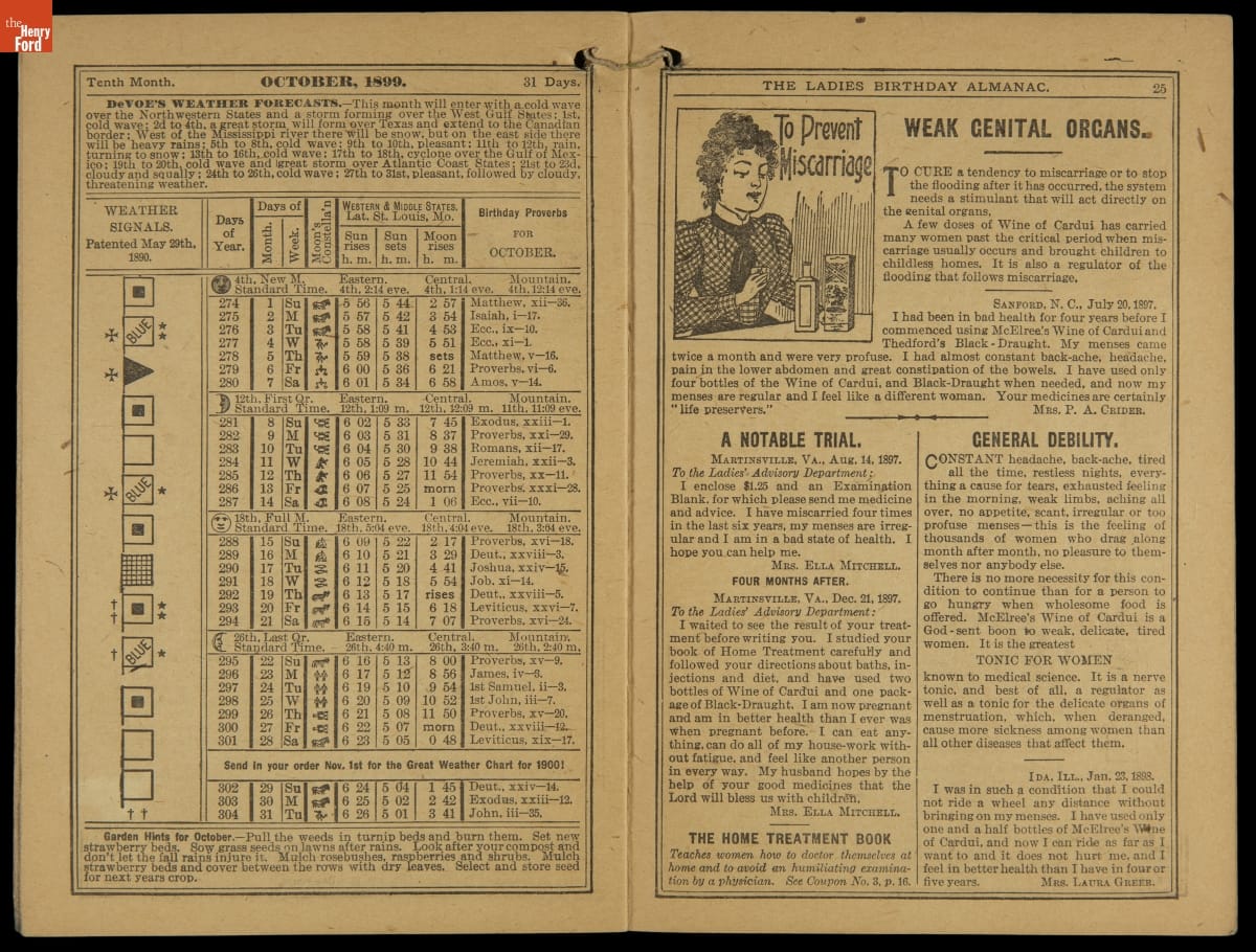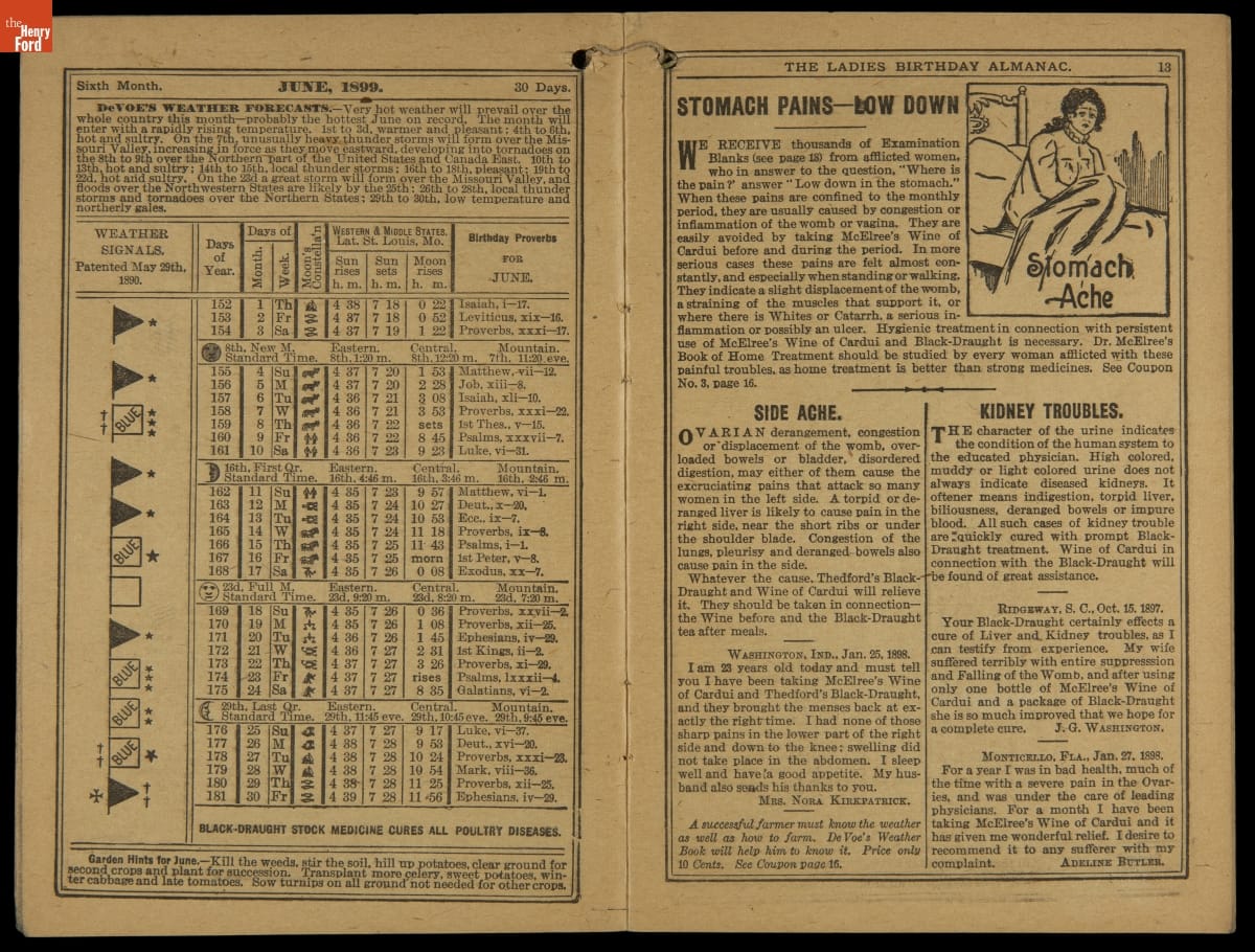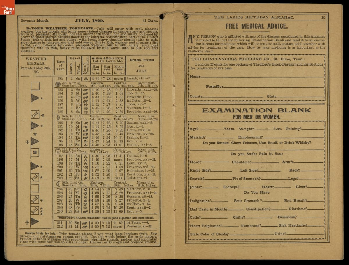 "The Ladies Birthday Almanac," Chattanooga Medicine Company, 1899