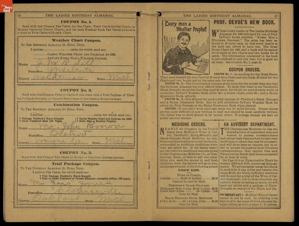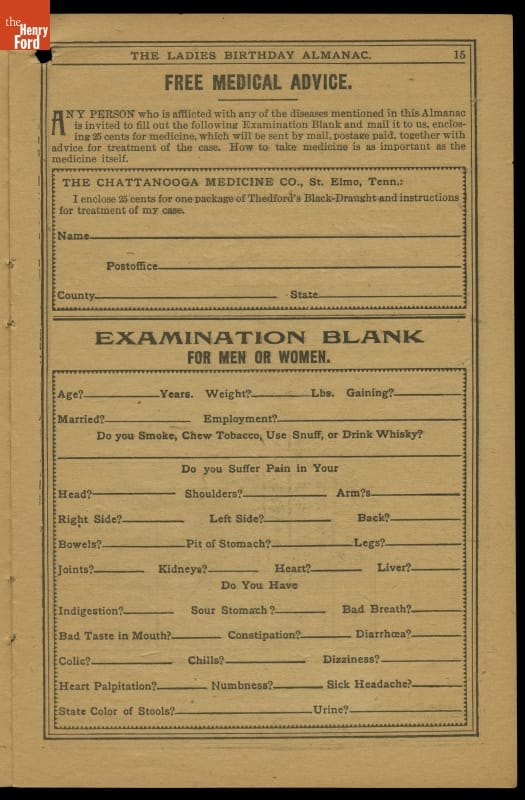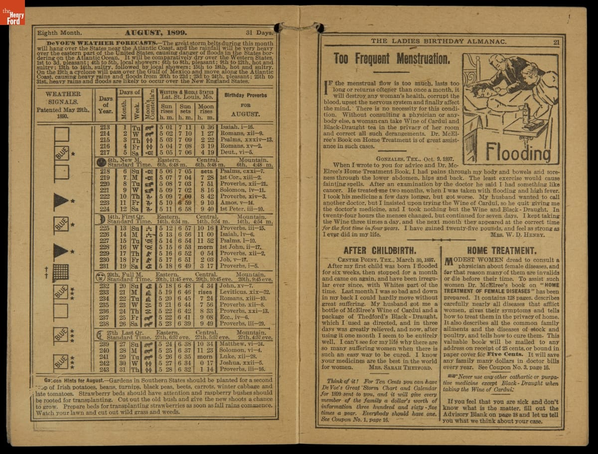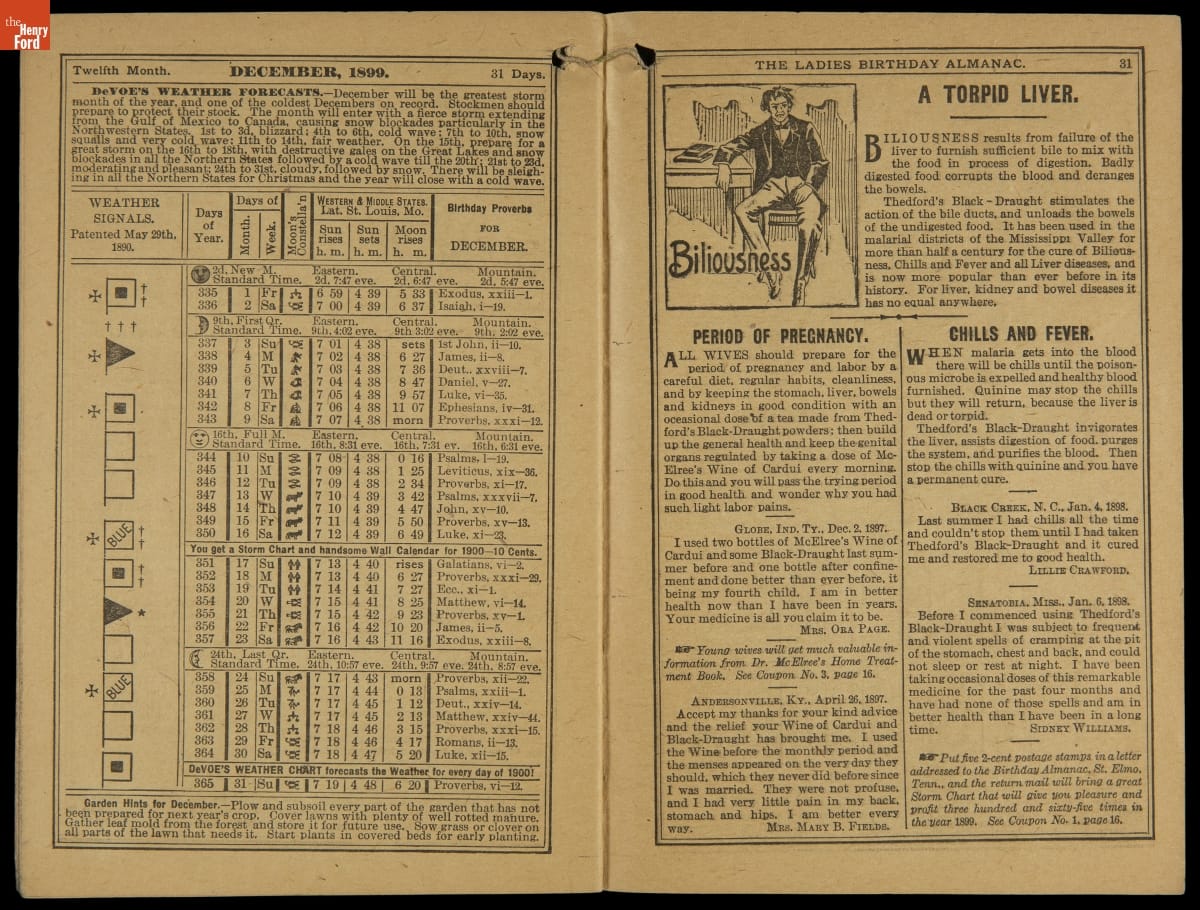 "The Ladies Birthday Almanac," Chattanooga Medicine Company, 1899