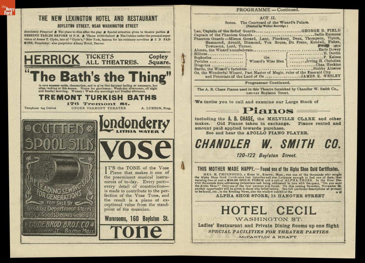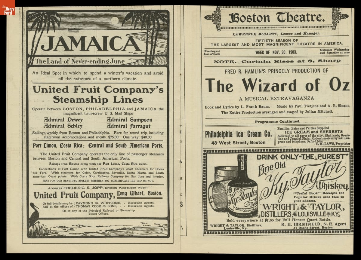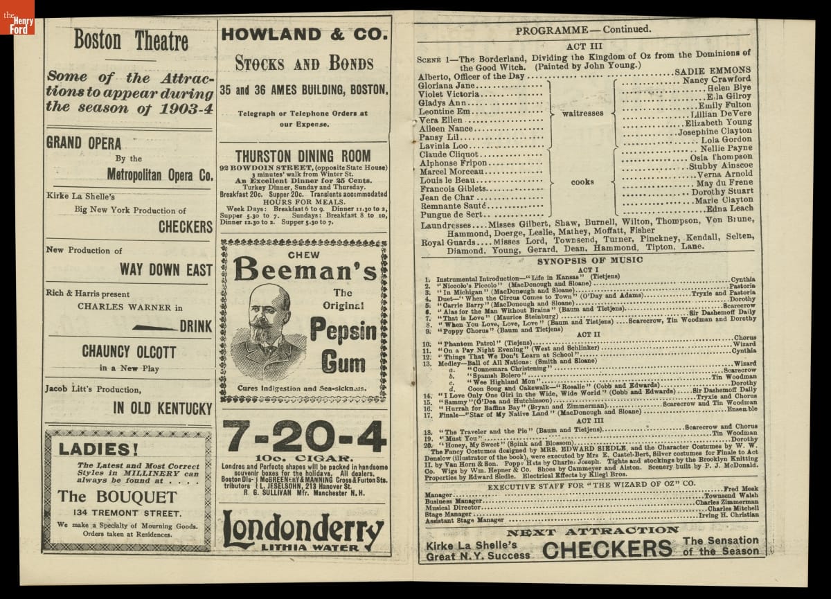 Theater Program, "The Wizard of Oz," Boston Theatre, Boston, Massachusetts, 1903