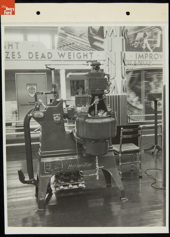 Chicago's 1933-34 Century of Progress Exposition used the theme of progress to encourage optimism during the Depression. The Ford Exhibition Building, which sat on eleven acres at the fair and featured industrial demonstrations and informative displays like this, became the most talked-about exhibit of 1934.