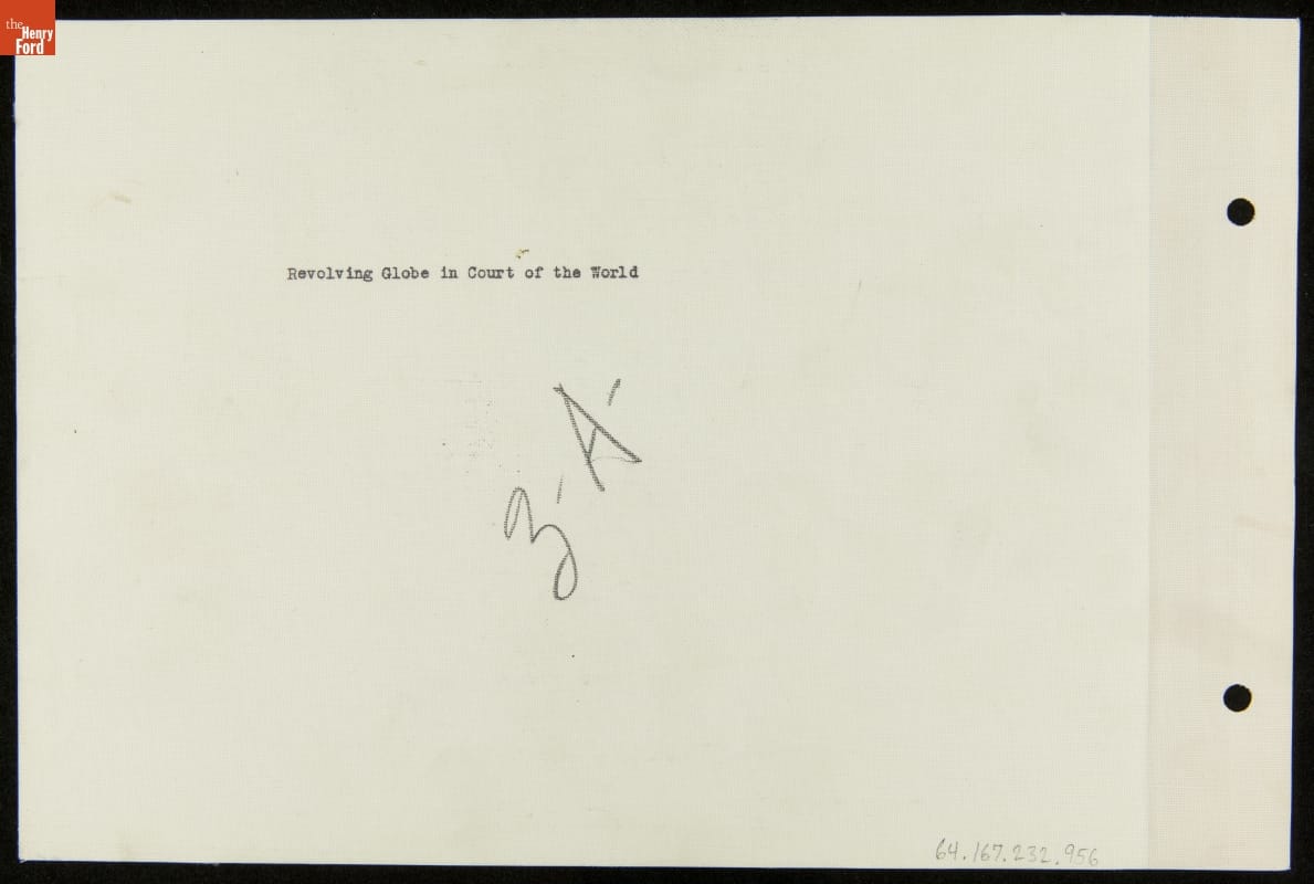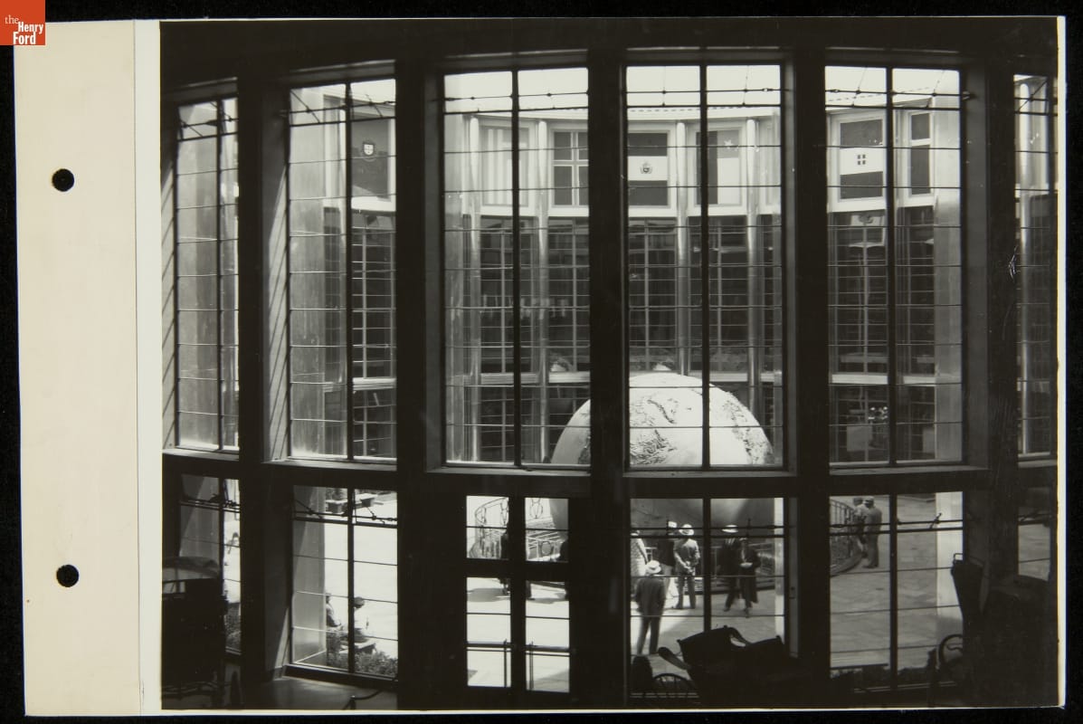 Ford Motor Company mounted the most talked-about exhibition in Chicago during the World's Fair in 1934. One attraction, a revolving globe in the Ford rotunda building's central Court of the World, illustrated Ford's growing industrial presence in mining, logging, and manufacturing operations around the world. This large three-dimensional map exemplified the fair's Century of Progress theme.