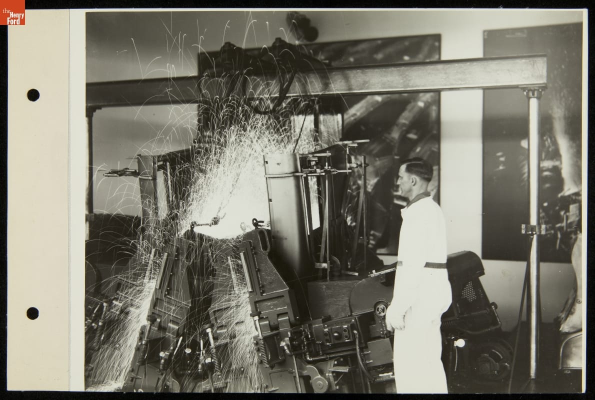 Chicago's 1933-34 Century of Progress Exposition used the theme of progress to encourage optimism during the Depression. The Ford Exhibition Building, which sat on eleven acres at the fair and featured industrial demonstrations and informative displays like this, became the most talked-about exhibit of 1934.