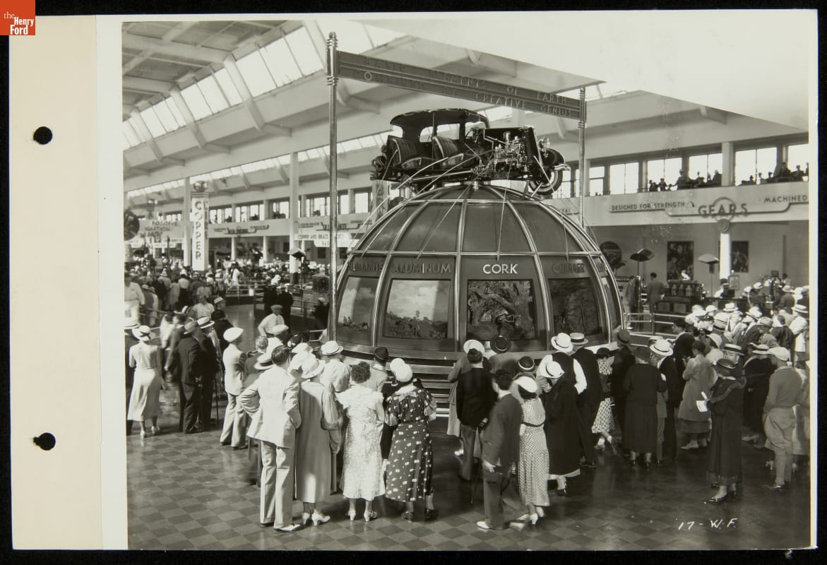 Chicago's 1933-34 Century of Progress Exposition used the theme of progress to encourage optimism during the Depression. The Ford Exhibition Building, which sat on eleven acres at the fair and featured industrial demonstrations and informative displays like this, became the most talked-about exhibit of 1934.