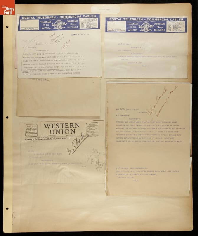 Scrapbook by W.C. Cowling for Charles Sorensen, regarding Establishing a Ford Motor Company Plant in Shanghai, China, 1930-1932