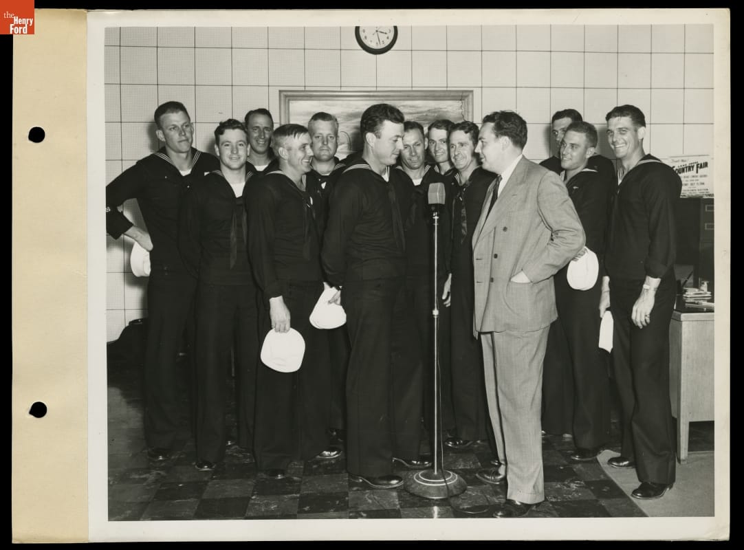 U.S. Navy Great Lakes Baseball Team at B-24 Radio Station Broadcast Studio, Willow Run Bomber Plant, 1944