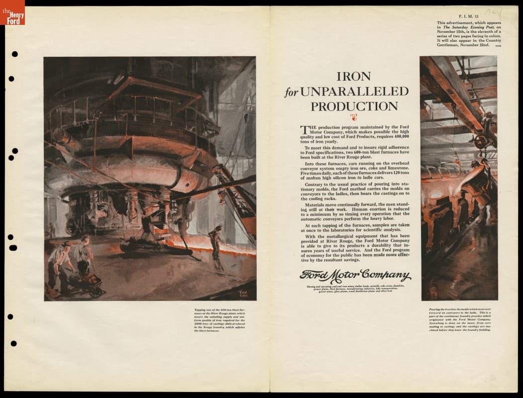1924 Ford Motor Company Institutional Message Advertising Campaign, "Iron for Unparalleled Production"