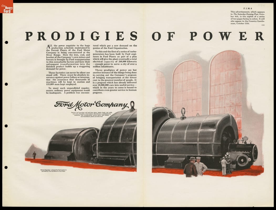 1924 Ford Motor Company Institutional Message Advertising Campaign, "Prodigies of Power"