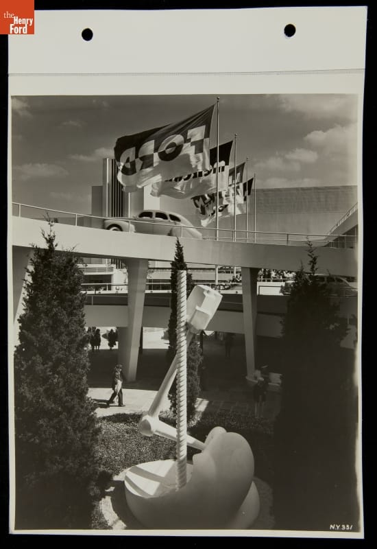 Ford Motor Company was a major participant in the 1939-40 New York World's Fair. In addition to viewing educational demonstrations and exhibits, Ford exposition visitors could ride in brand-new Ford automobiles along the Road of Tomorrow. Befitting the fair's "Building the World of Tomorrow" theme, this conceptual highway experience suggested modern techniques for safer, quieter, and more efficient roadways.