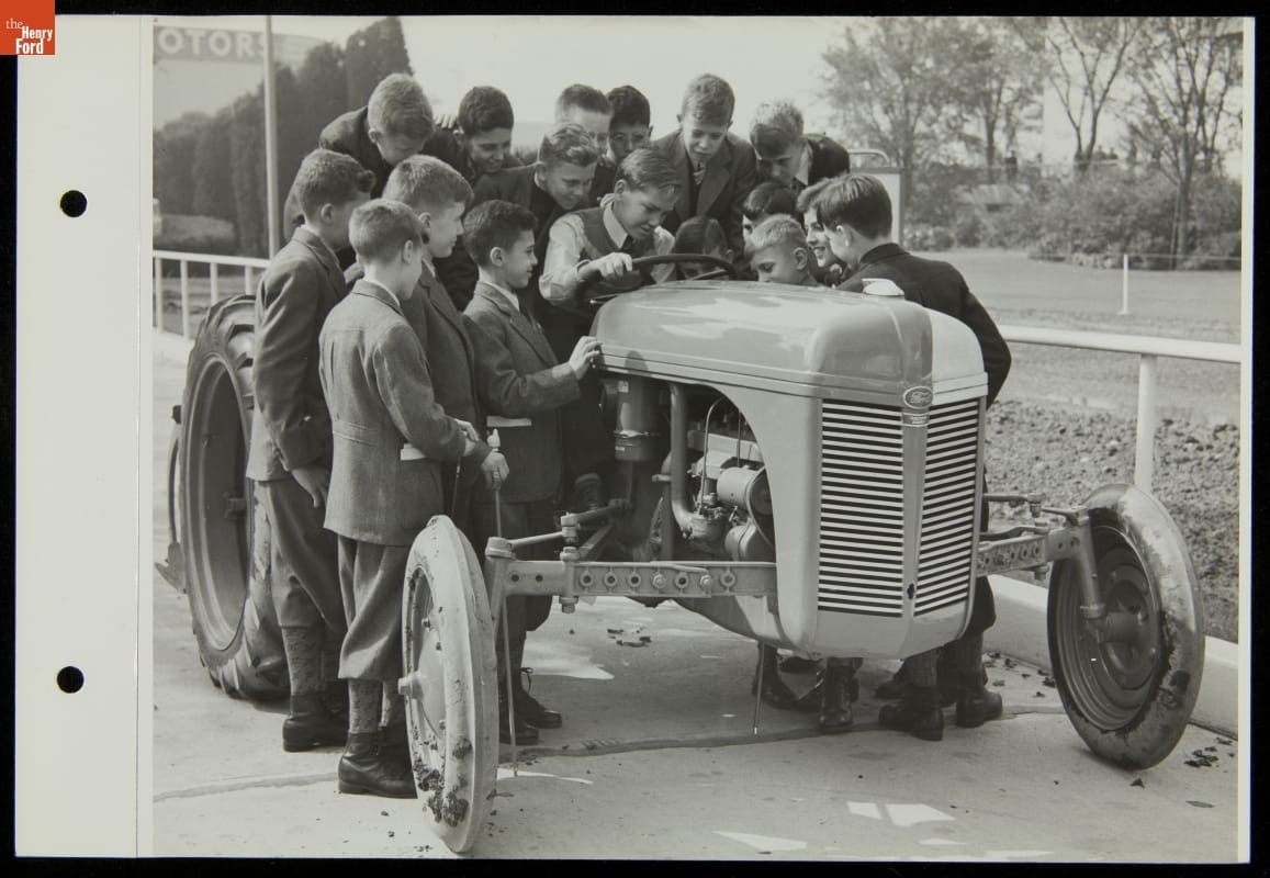 Girard College Boys with Tractor, Ford Exposition, New York World's Fair, 1939