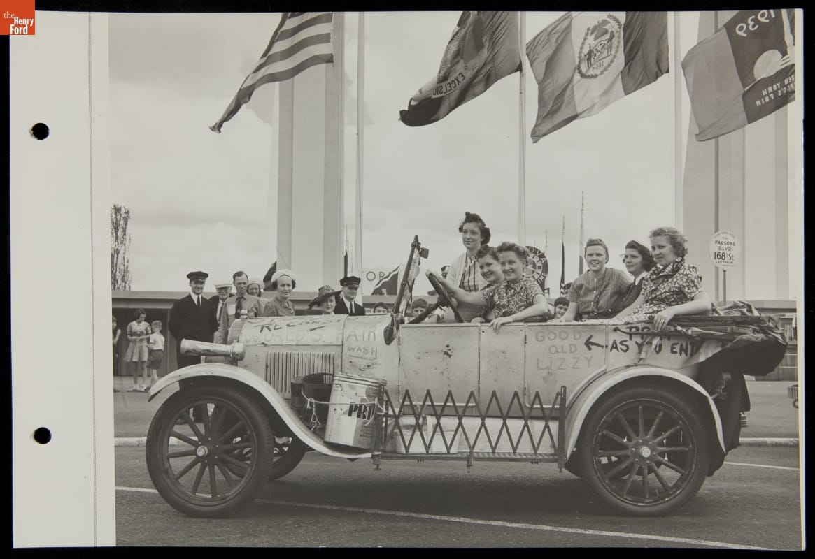 Darlene Dorgan, accompanied by four or five young women, spent summer vacations during the 1930s and early 1940s traveling in her 1926 Model T. The carefree troupes from Bradford, Illinois, roamed the United States and Canada in a self-painted silver "T" meeting new friends and making news. In 1939, the happy-go-lucky vacationers drove the "Silver Streak" to the New York World's Fair.