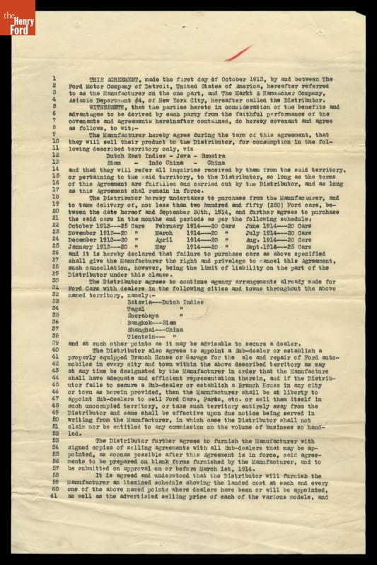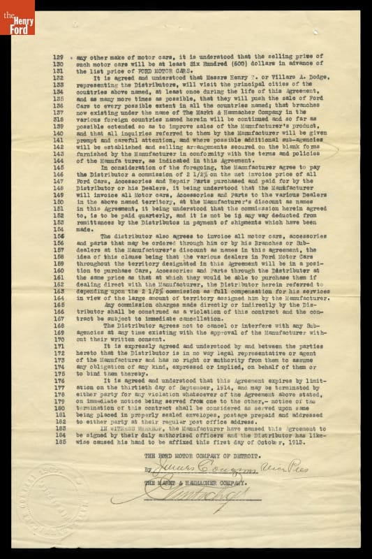 Dealer Agreement Between Ford Motor Company and Markt & Hammacher Company, 1913