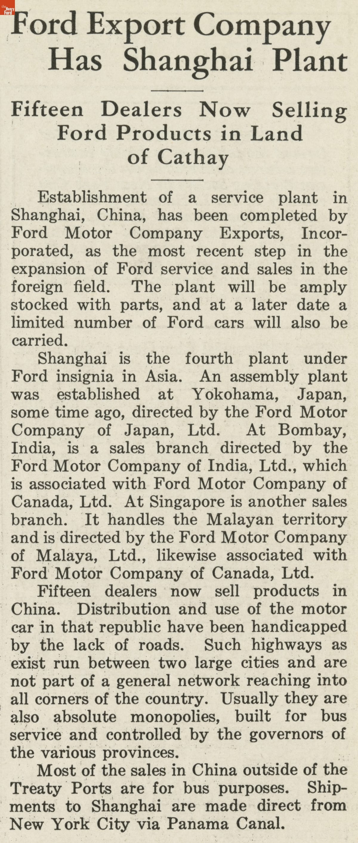 Ford Motor Company published Ford News from 1920 to 1942. The magazine kept employees and dealers informed on the automaker's products and activities. Each issue contained general-interest stories as well. Editors described the publication as "holding at heart the interests of the Company and employee, a digest of events in the Ford world."