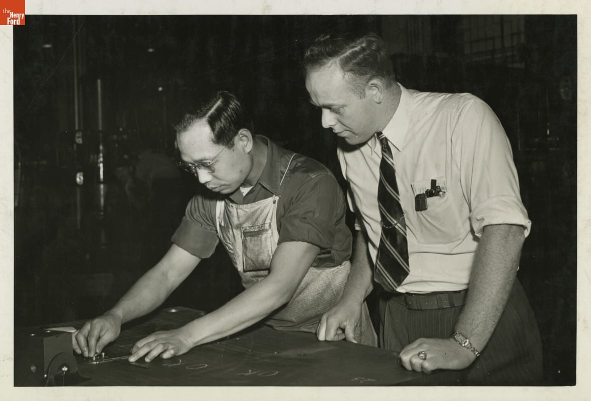The Henry Ford Trade School, established by Henry Ford at Highland Park, Michigan, in 1916, taught students a variety of industrial trade skills like machining, metallurgy, drafting, and engine design. The school sometimes enrolled international students. Horn Yee and Sang Leong came from China to train at the school and apprentice at Ford Motor Company in 1945.