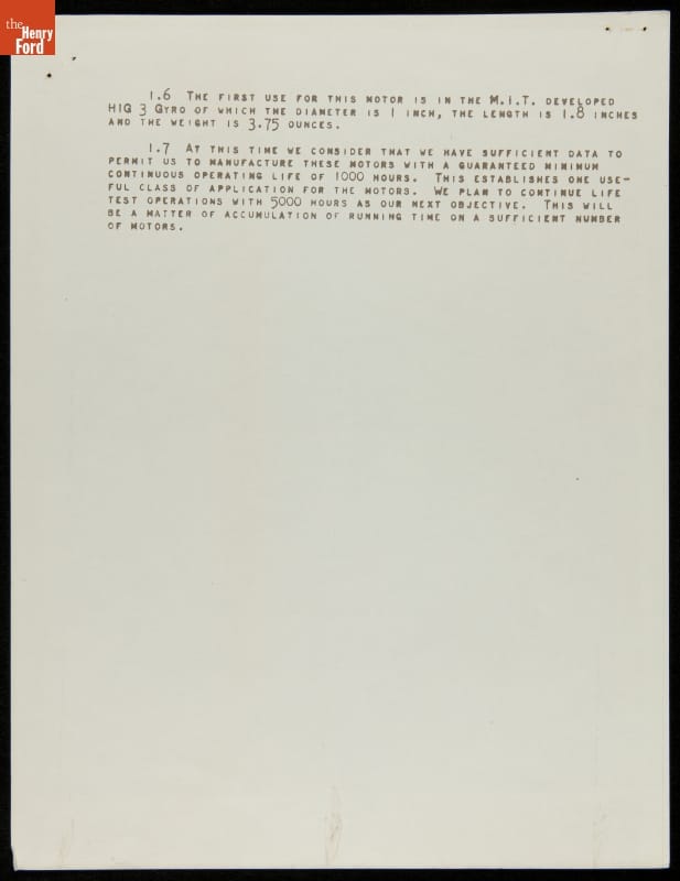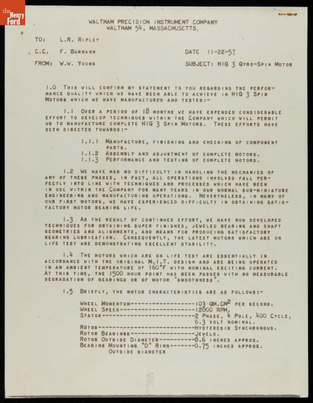 Letter regarding the HIG 3 Gyro-Spin Motor, 1957