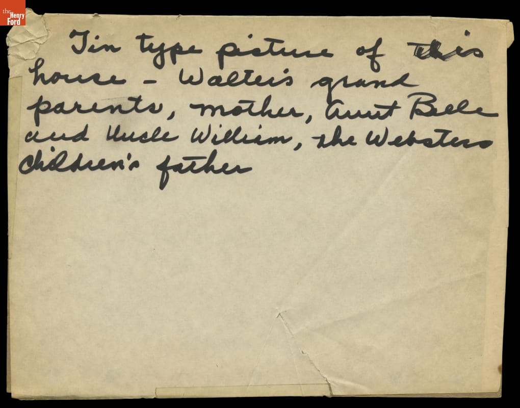 Tin type picture of this house - Walter's grand parents, mother, Aunt Belle and Uncle William, the Websters children's father