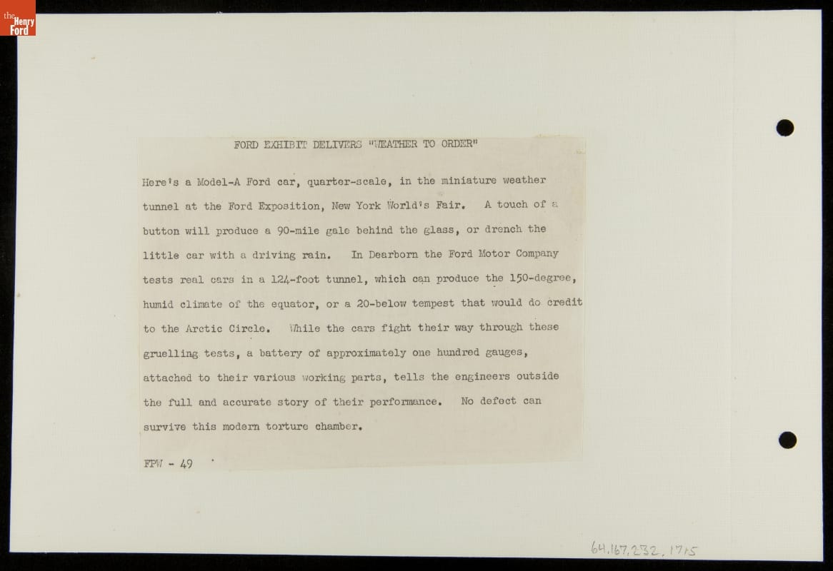 Wind Tunnel Exhibit, Ford Exposition, New York World's Fair, 1939