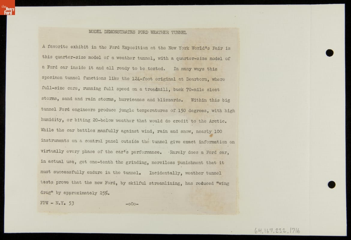 Wind Tunnel Exhibit, Ford Exposition, New York World's Fair, 1939