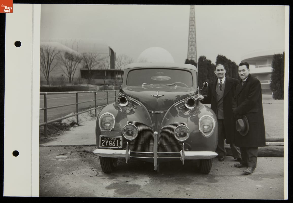 Men with Lincoln Zephyr Automobile, Ford Exposition, New York World's Fair, 1940