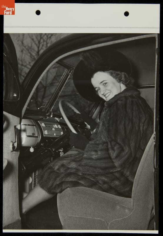 Ford Motor Company poured resources into the 1939-40 New York World's Fair, spending more than $5 million to construct and maintain its elaborate and well-attended exhibition space. Numerous celebrities joined Ford's 15 million reported exposition guests. This photograph shows opera singer Josephine Antoine during a visit to the Ford exposition in November 1940.