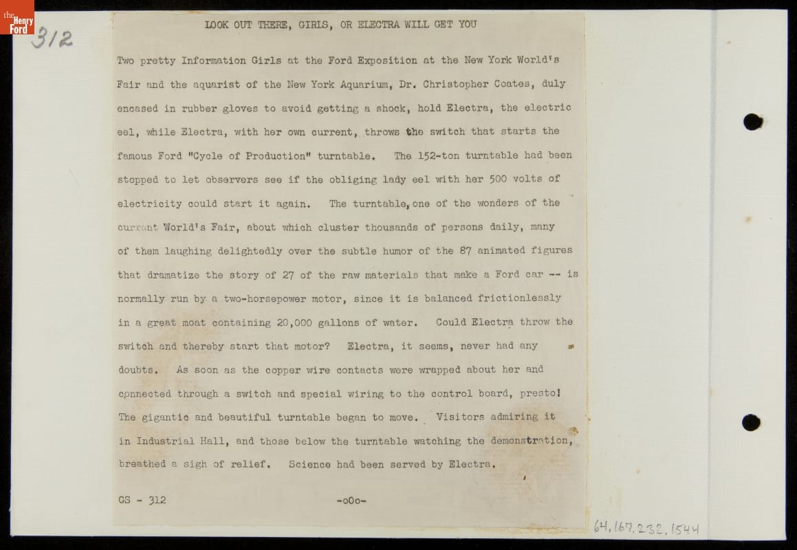Electric Eel, Ford Exposition, New York World's Fair, 1939