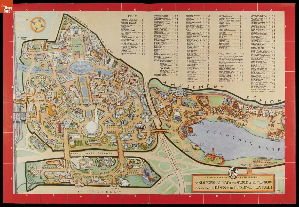 Brochure and Map of Ford Exhibition Building and "The World of Tomorrow," New York World's Fair, 1939-1940