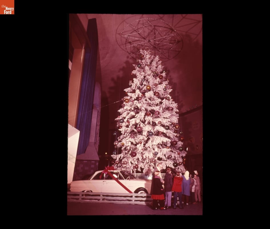 Ford Falcon Automobile and Christmas Tree Inside the Ford Rotunda Building, Dearborn, Michigan, 1959