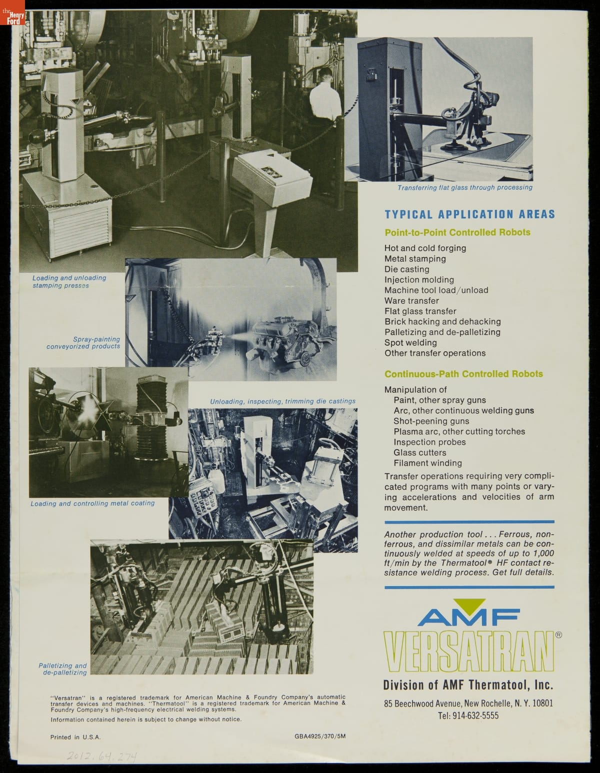 AMF Thermatool, Inc. Brochure, "Flexible Automation: AMF Versatran Industrial Robots," 1970