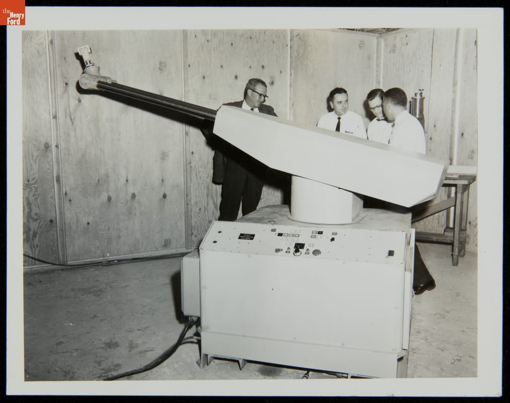 George Devol revolutionized manufacturing with his invention of the Unimate -- the world's first industrial robot. These rugged programmable units were designed to perform repetitive, arduous and hazardous tasks. The first Unimate was installed in a General Motors plant in 1961. This photograph, part of a larger archival collection documenting Devol's work, illustrates the functions and uses of his innovative idea.