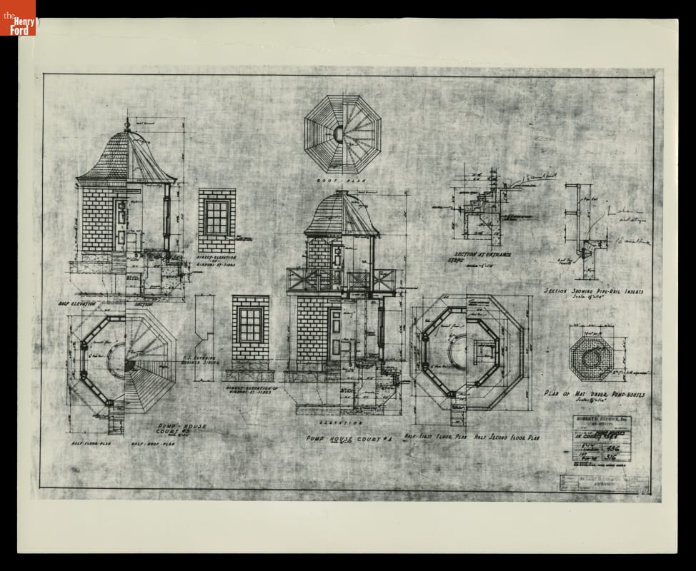 Drawing of Pump Houses in Henry Ford Museum Courtyards, Dearborn, Michigan, 1929