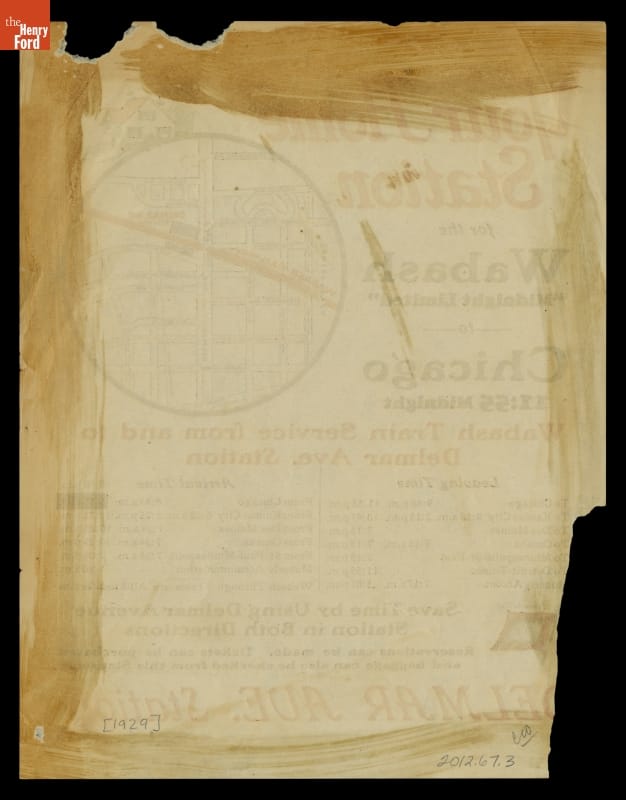 Handbill and Timetable for Wabash Railway's "Midnight Limited," Leaving from Delmar Avenue Station, St. Louis, Missouri, 1929