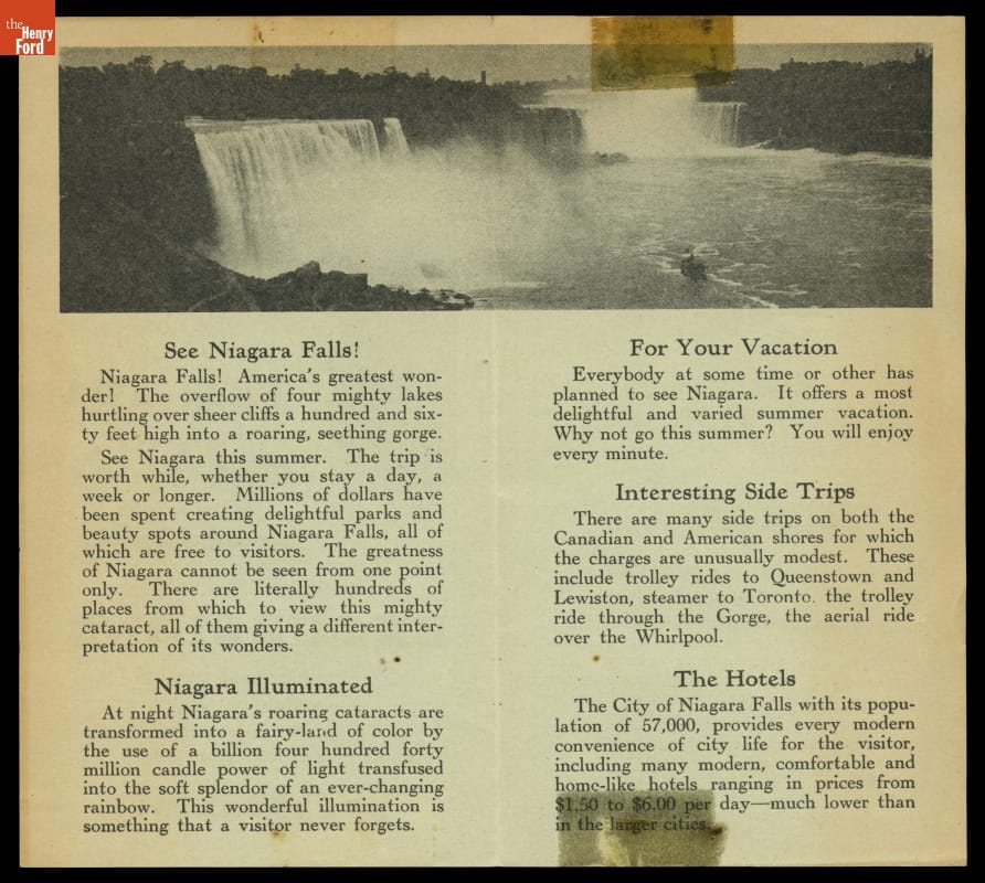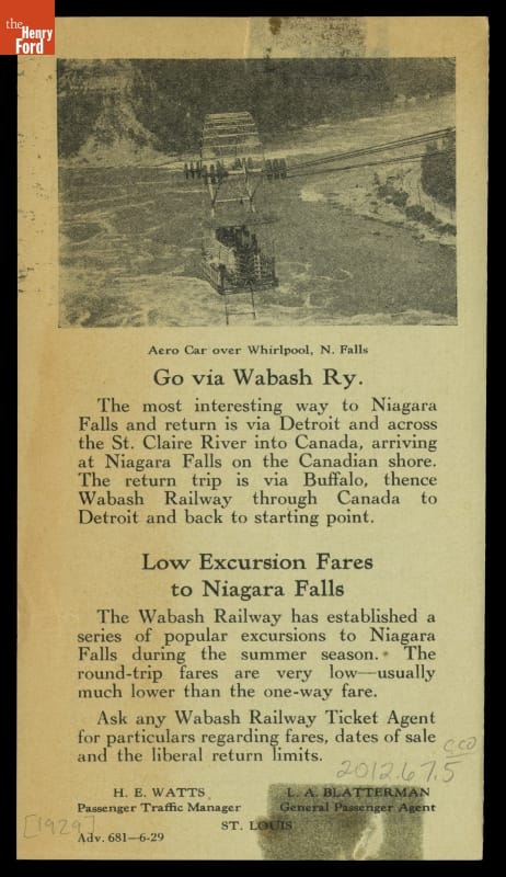 Brochure for Wabash Railway's Excursions, "See Niagara Falls, America's Greatest Wonder," 1929