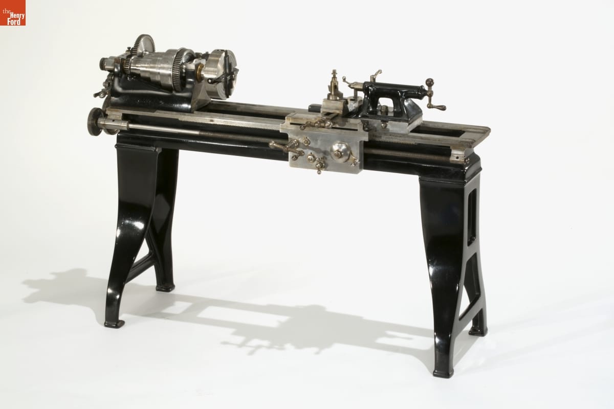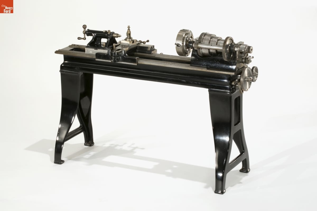 Henry Ford firmly believed in the "practical educational value" of World's Fair exhibits. During the 1939-40 New York World's Fair, he highlighted the work of students attending his experimental schools. In a miniature machine shop in the Ford building, boys from Ford's Edison Institute Schools operated quarter-size replicas, including this lathe, based on machines from Thomas Edison's Menlo Park.
