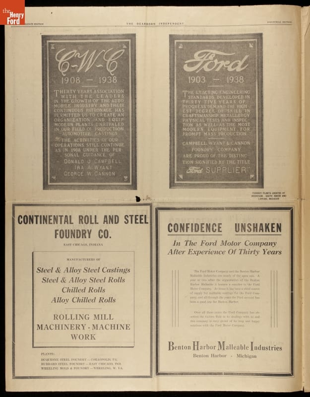 Newspaper, "The Dearborn Independent, Ford Confidence Edition, Industrial Section," 1938