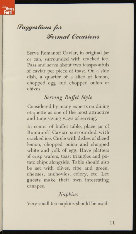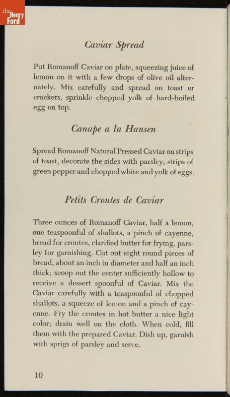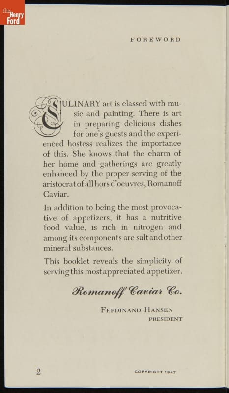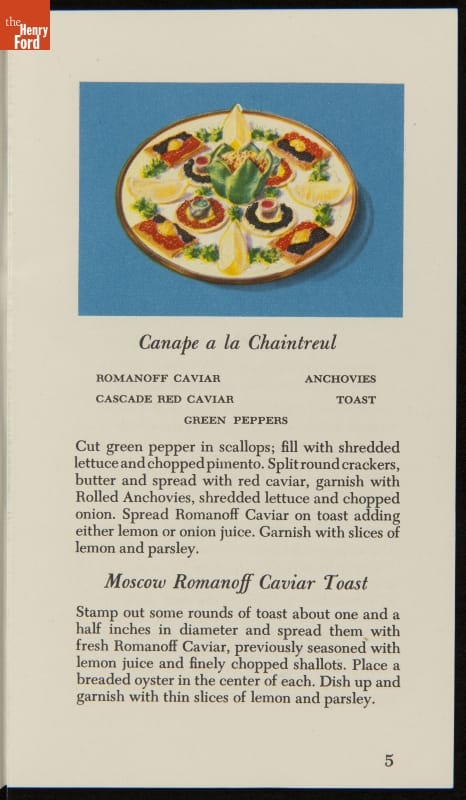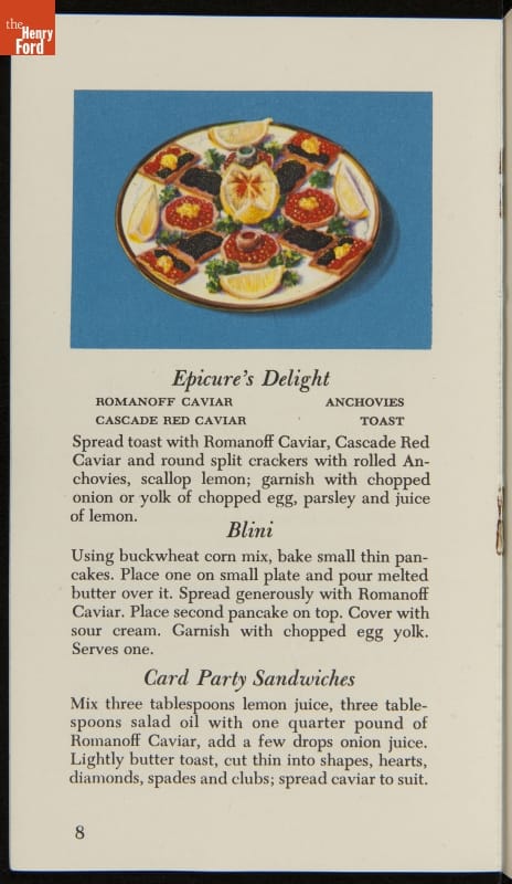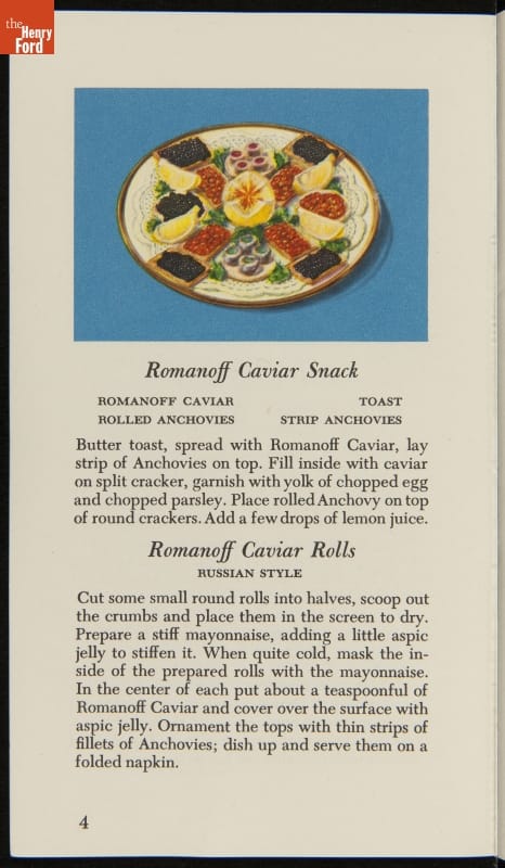 Advertising Brochure, "Romanoff Caviar, Dainty Recipes and Titbits," 1947