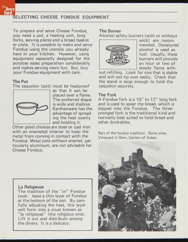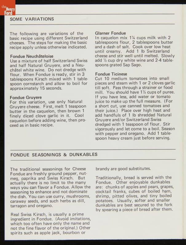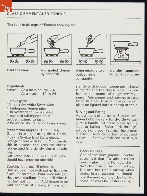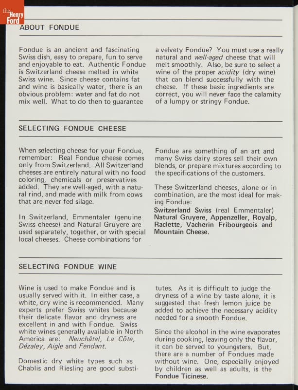 Advertising Brochure, "Fondue, Original Recipes from Switzerland Cheese Association," 1979