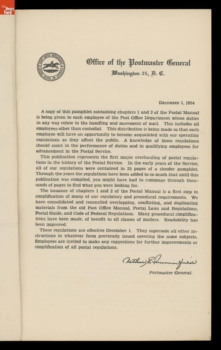 "Postal Manual," 1954