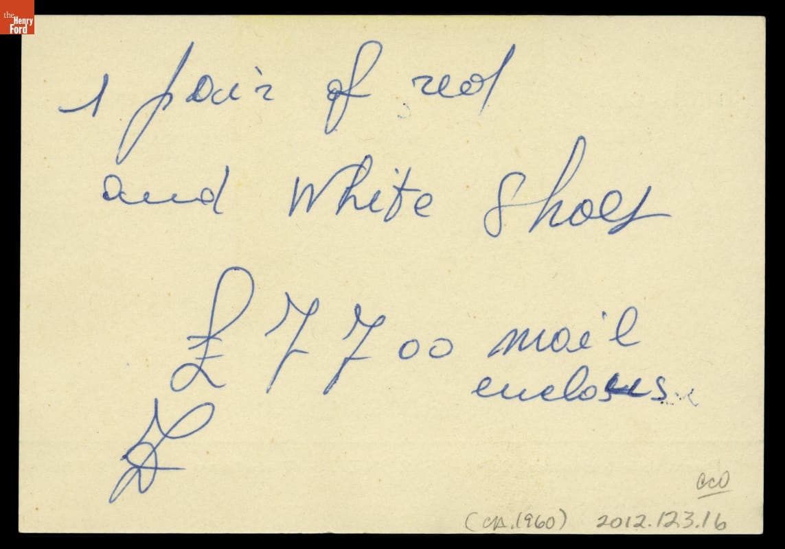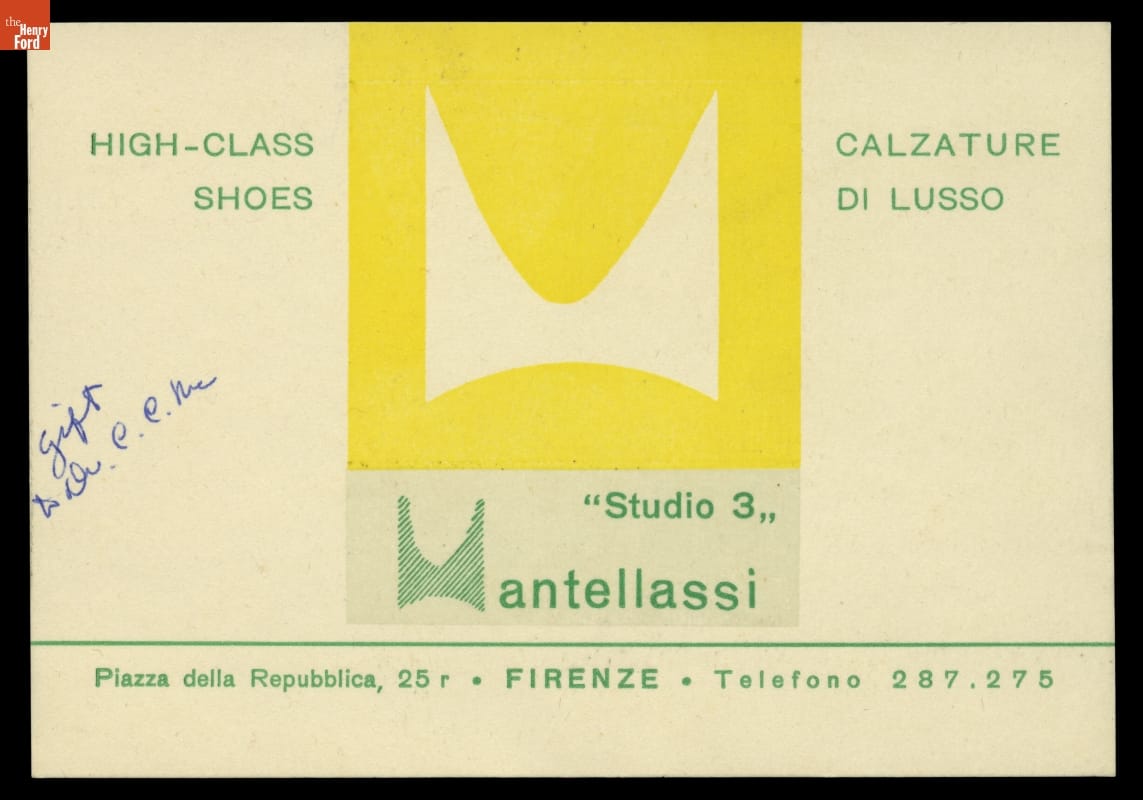 Business Card with Handwritten Receipt, Studio Mantellassi "High Class Shoes," circa 1960