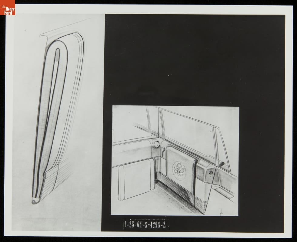 Lincoln Continental Presidential Limousine Customization, Sketch of Door Pocket and Jump Seat, 1961