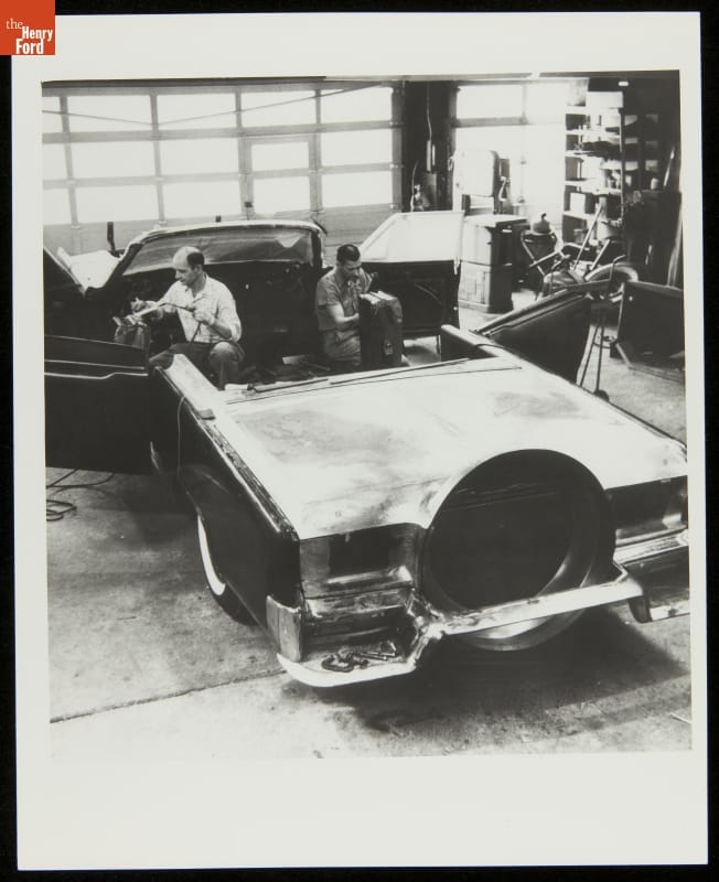 The Hess & Eisenhardt Company of Cincinnati, Ohio, transformed a stock 1961 Lincoln Continental convertible into the presidential limousine. The firm stretched the car by 3-1/2 feet, added steps for Secret Service agents, and installed a siren, flashing lights, and other special accessories. The customization took approximately six months and the car arrived at the White House in June 1961.