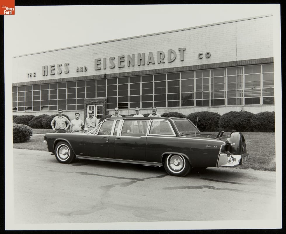 After President John F. Kennedy's assassination on November 22, 1963, the Hess & Eisenhardt Company of Cincinnati, Ohio, rebuilt the 1961 Lincoln Continental Presidential Limousine into an armored car. Titanium armor, bullet-resistant glass and tires, and a permanent roof improved the president's security. The modified car returned to the White House in May 1964 and remained in service until 1977.