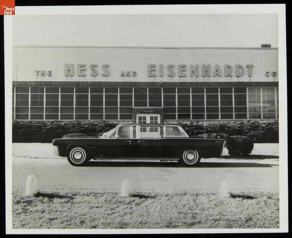 After President John F. Kennedy's assassination on November 22, 1963, the Hess & Eisenhardt Company of Cincinnati, Ohio, rebuilt the 1961 Lincoln Continental Presidential Limousine into an armored car. Titanium armor, bullet-resistant glass and tires, and a permanent roof improved the president's security. The modified car returned to the White House in May 1964 and remained in service until 1977.