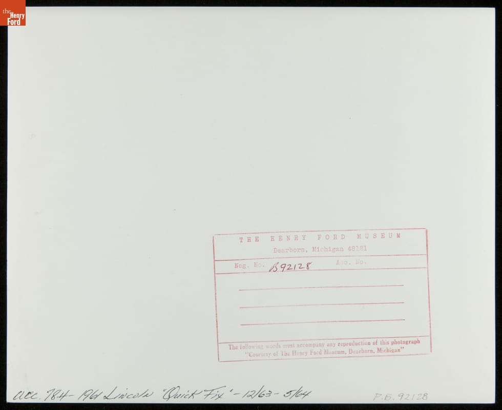1961 Lincoln Continental Presidential Limousine Mockup Top during "Quick Fix," 1964