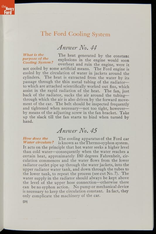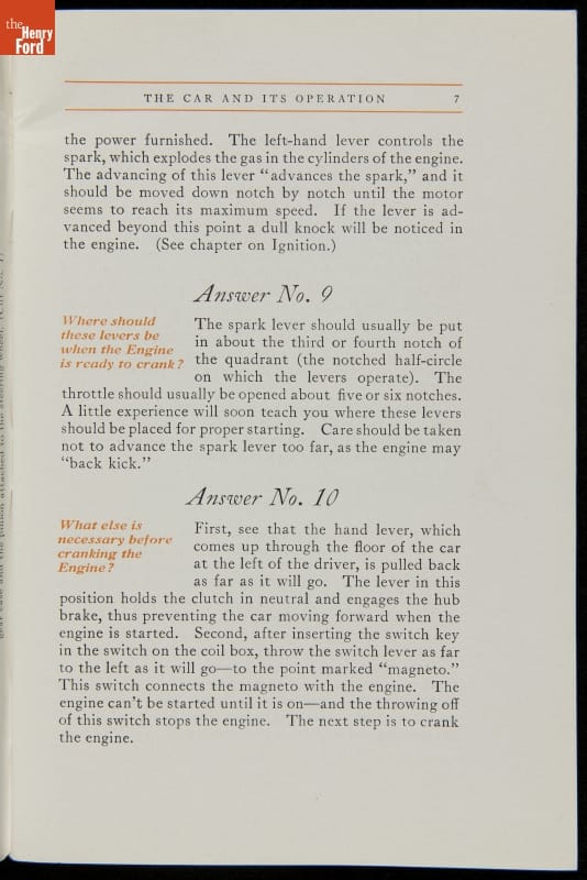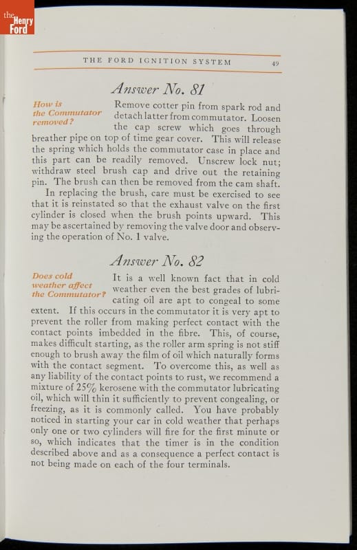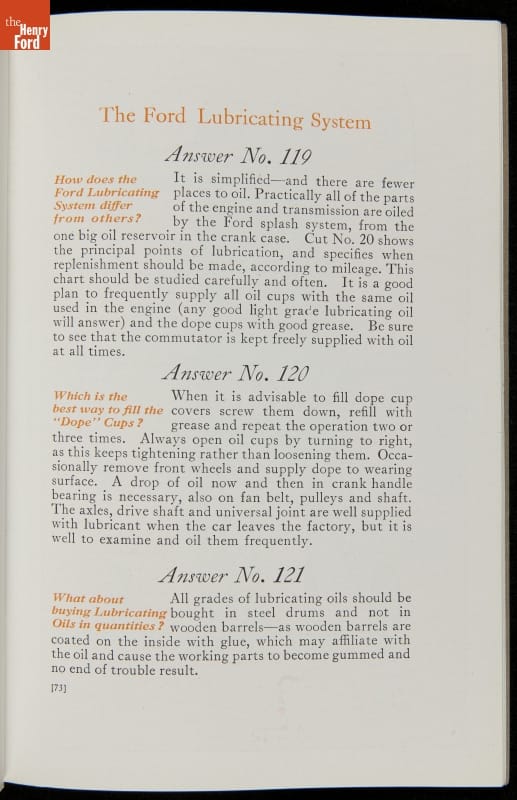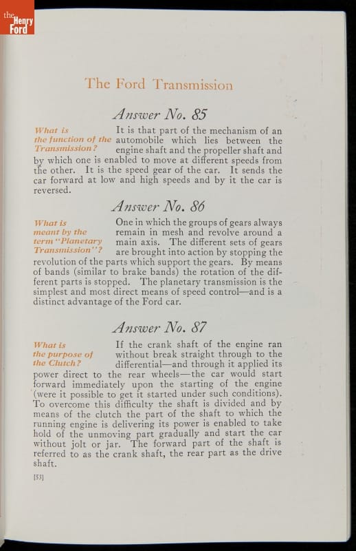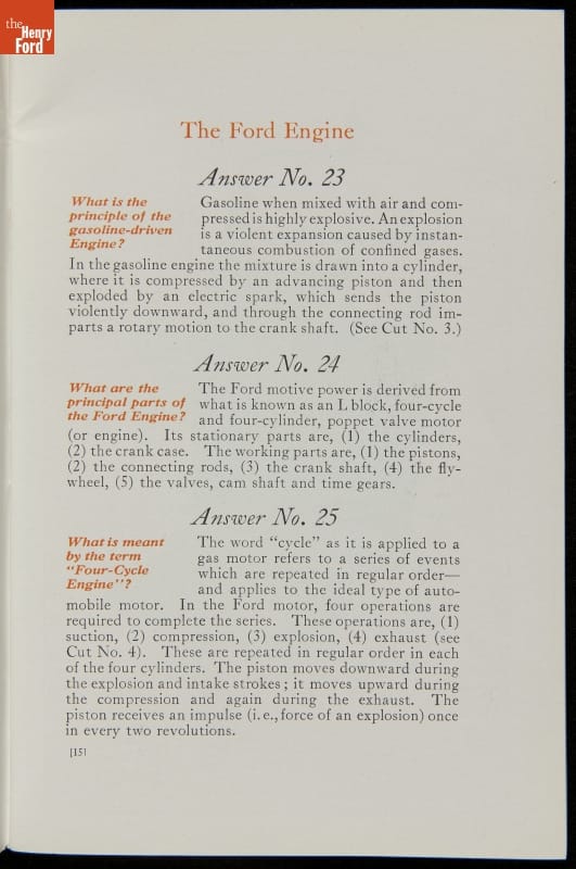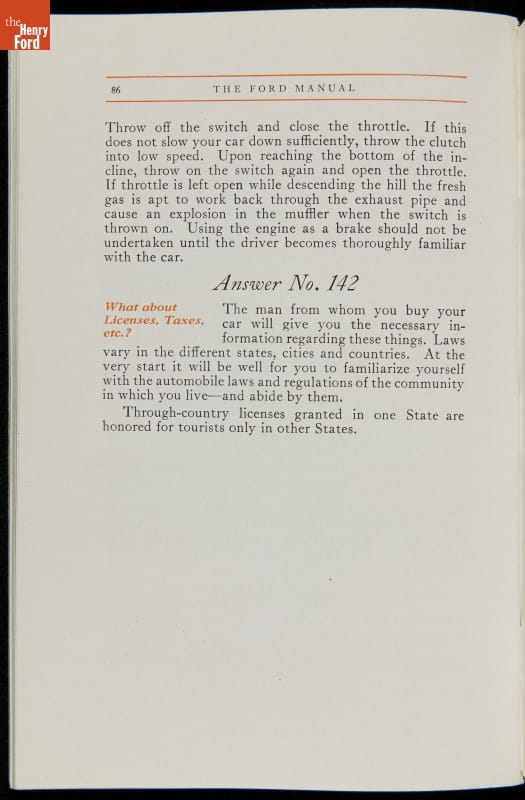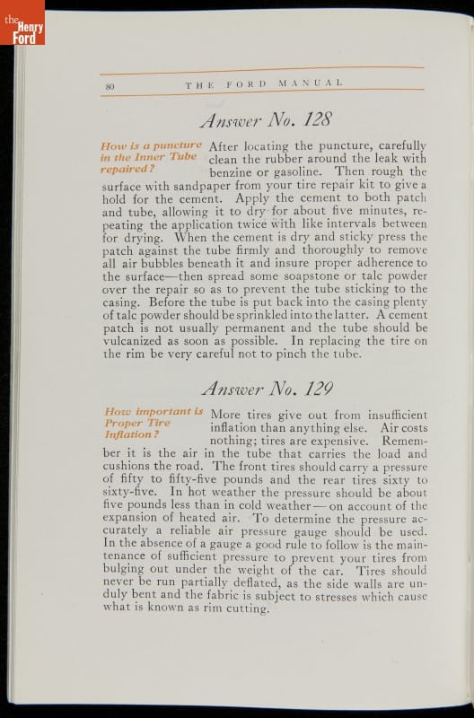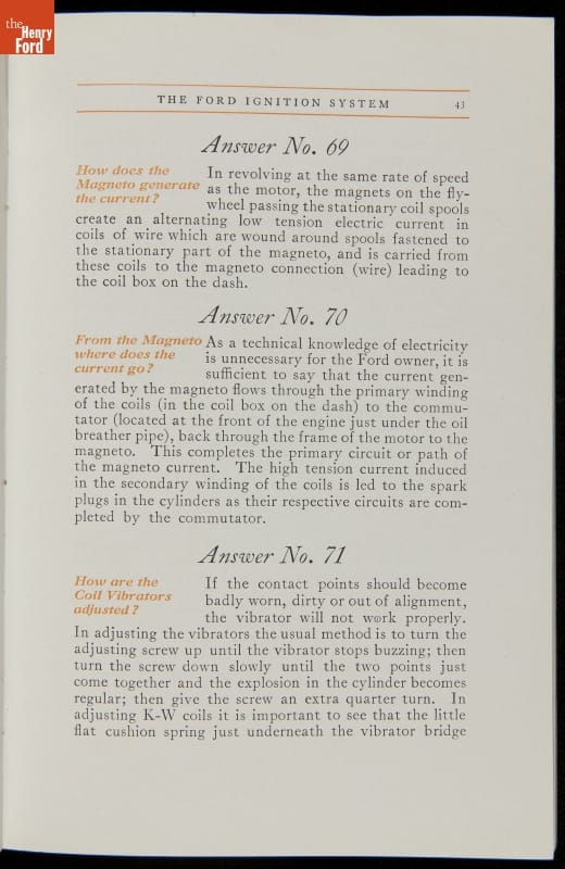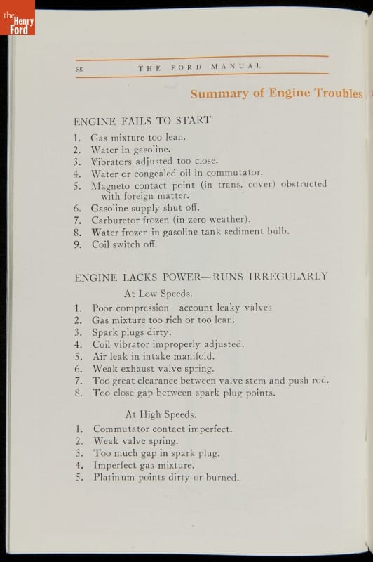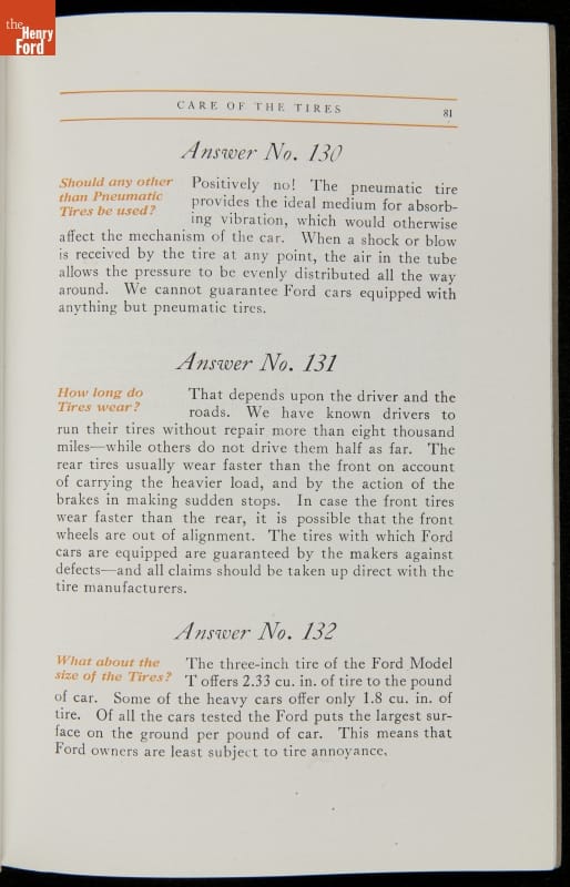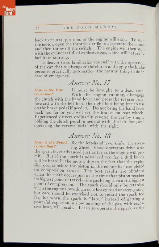 As cars became affordable and more people began using them, owners needed to know how to operate them properly. This 1914 manual helped the layperson -- without a mechanical or technical automotive background -- understand and drive the Ford Model T. Ford touted the T's simplicity, but its manual still provided over 140 answers to possible questions owners might have.