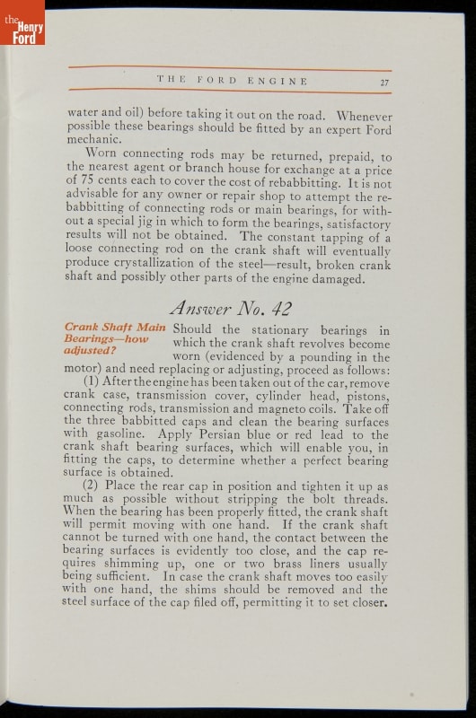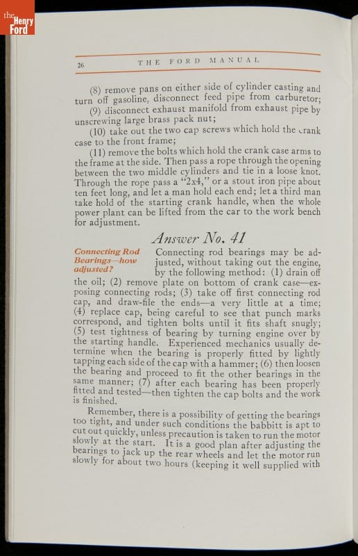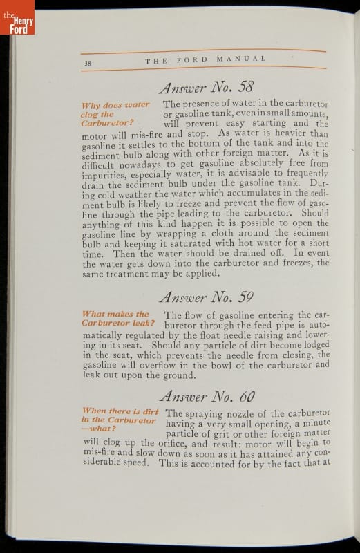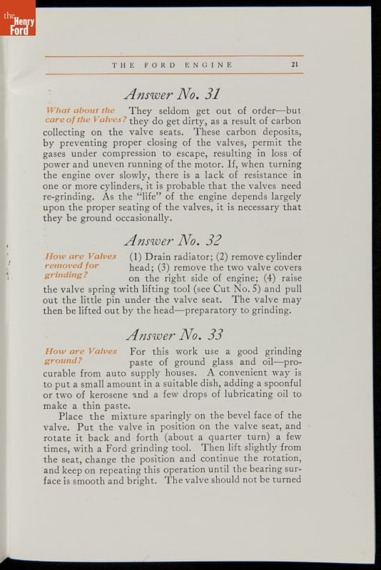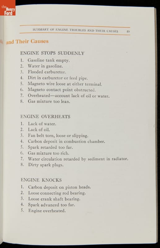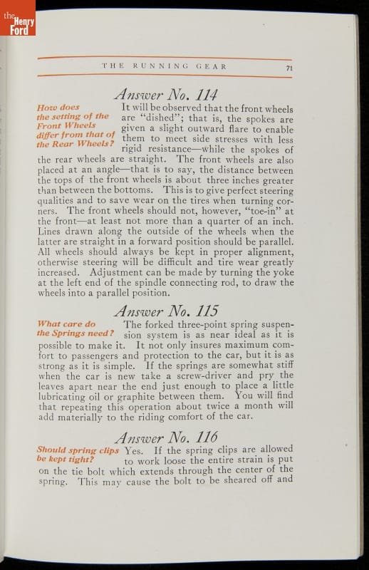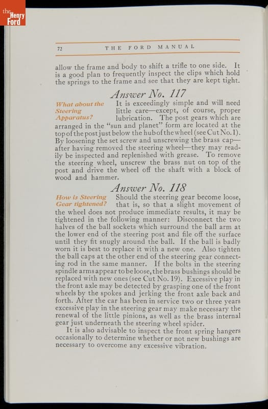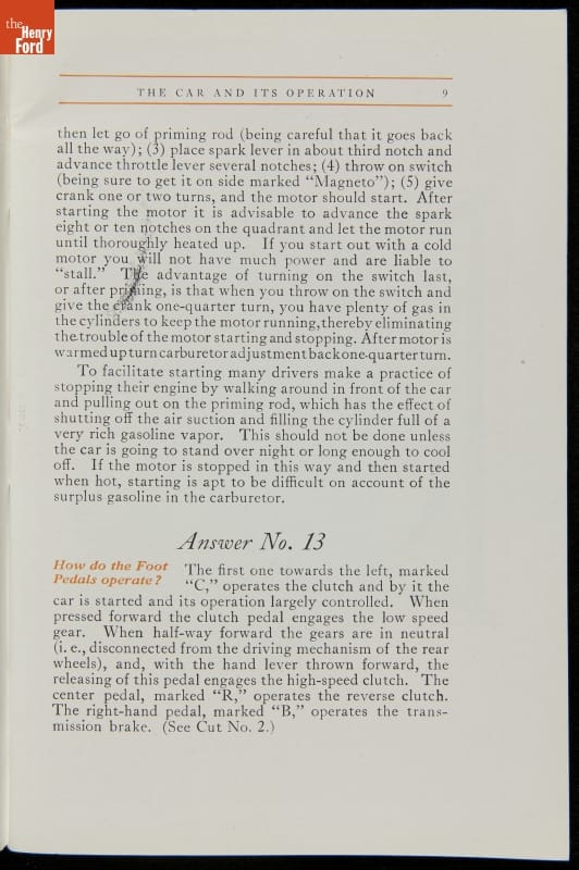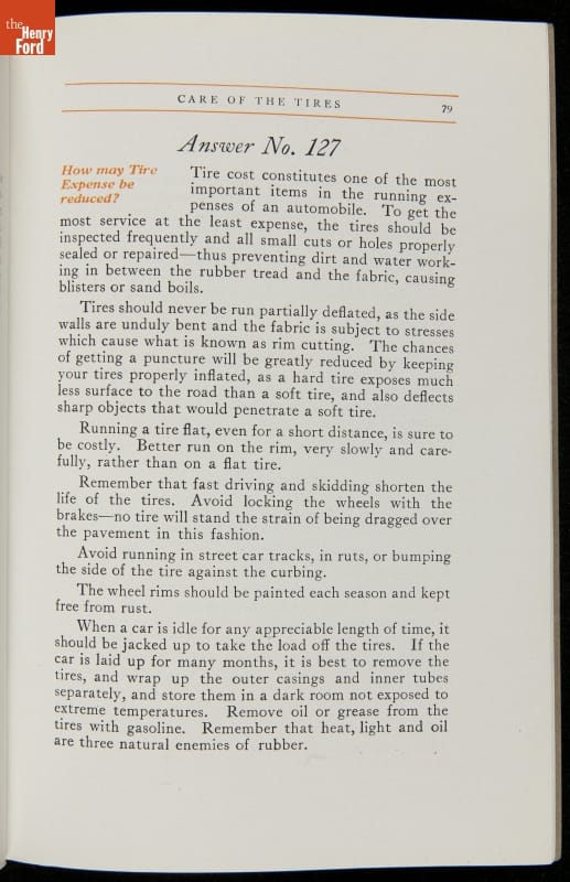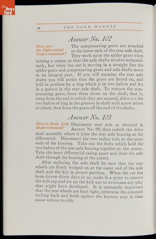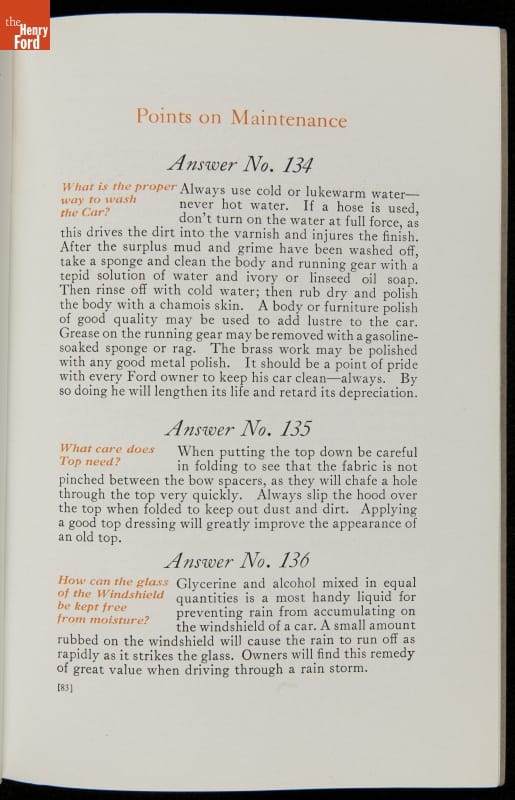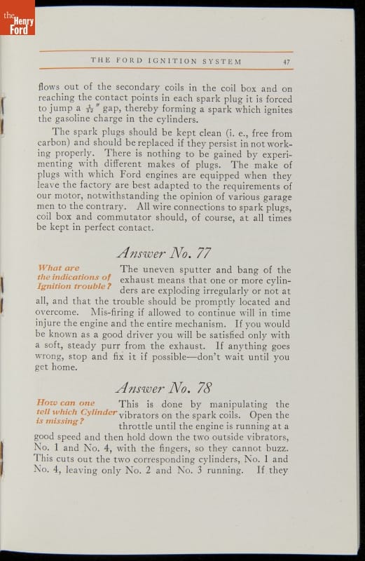 As cars became affordable and more people began using them, owners needed to know how to operate them properly. This 1914 manual helped the layperson -- without a mechanical or technical automotive background -- understand and drive the Ford Model T. Ford touted the T's simplicity, but its manual still provided over 140 answers to possible questions owners might have.