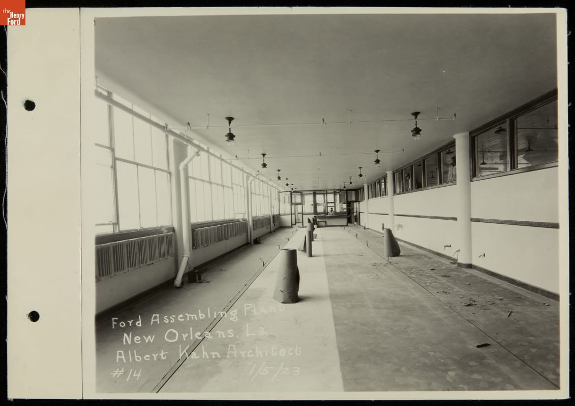 Starting in the early 1910s, Ford Motor Company opened domestic assembly plants throughout the United States. Assembling automobiles closer to regional markets reduced shipping costs -- parts were cheaper to ship than completed automobiles. Albert Kahn, America's foremost industrial architect, designed Ford's modern, one-story New Orleans Assembly plant. The plant, which opened in 1923, supplied automobiles to three states until it closed in 1933.