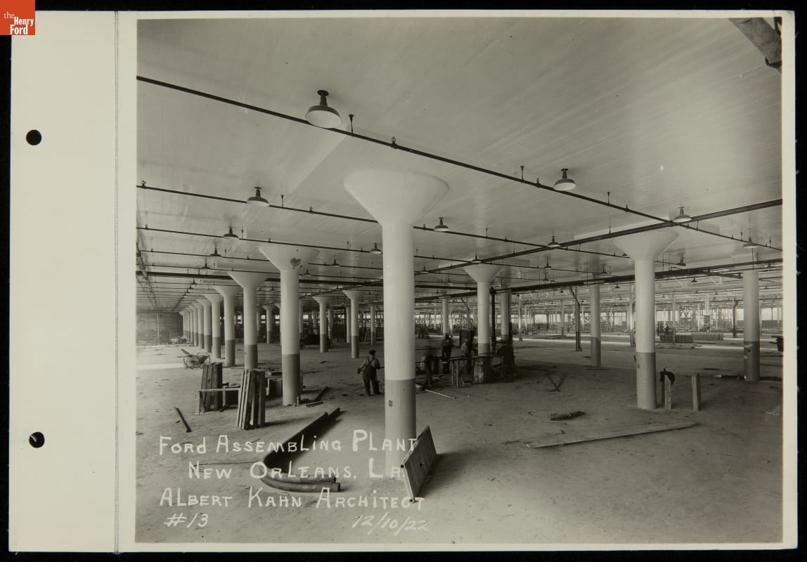 Starting in the early 1910s, Ford Motor Company opened domestic assembly plants throughout the United States. Assembling automobiles closer to regional markets reduced shipping costs -- parts were cheaper to ship than completed automobiles. Albert Kahn, America's foremost industrial architect, designed Ford's modern, one-story New Orleans Assembly plant. The plant, which opened in 1923, supplied automobiles to three states until it closed in 1933.