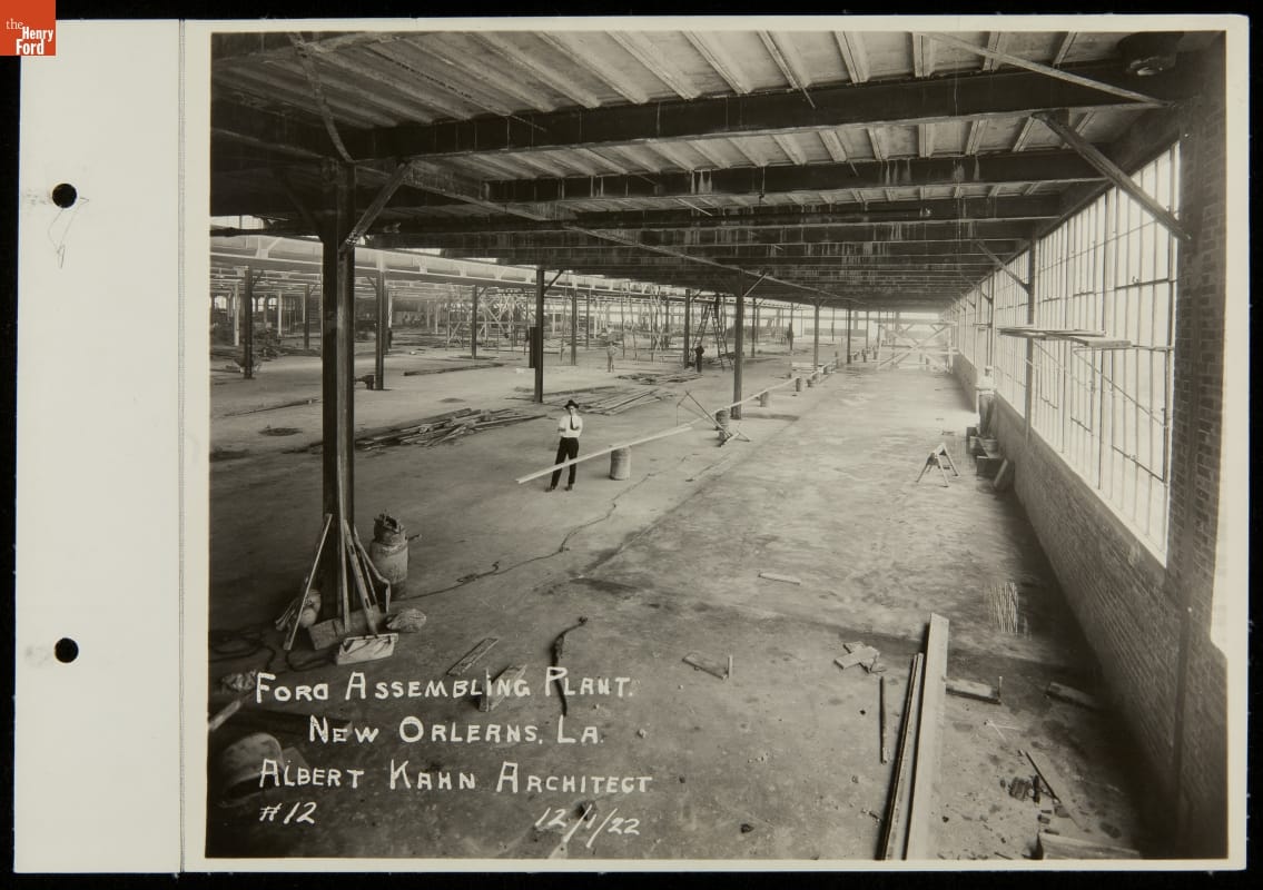 Starting in the early 1910s, Ford Motor Company opened domestic assembly plants throughout the United States. Assembling automobiles closer to regional markets reduced shipping costs -- parts were cheaper to ship than completed automobiles. Albert Kahn, America's foremost industrial architect, designed Ford's modern, one-story New Orleans Assembly plant. The plant, which opened in 1923, supplied automobiles to three states until it closed in 1933.