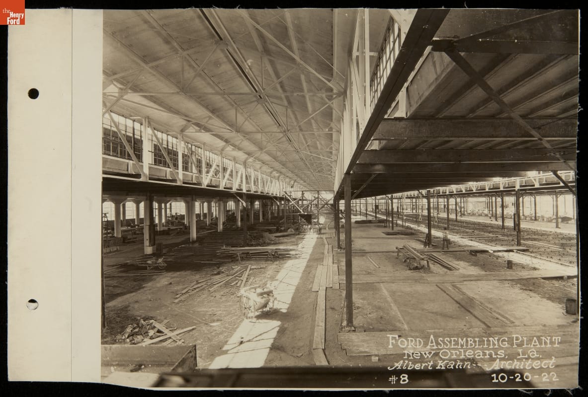 Starting in the early 1910s, Ford Motor Company opened domestic assembly plants throughout the United States. Assembling automobiles closer to regional markets reduced shipping costs -- parts were cheaper to ship than completed automobiles. Albert Kahn, America's foremost industrial architect, designed Ford's modern, one-story New Orleans Assembly plant. The plant, which opened in 1923, supplied automobiles to three states until it closed in 1933.