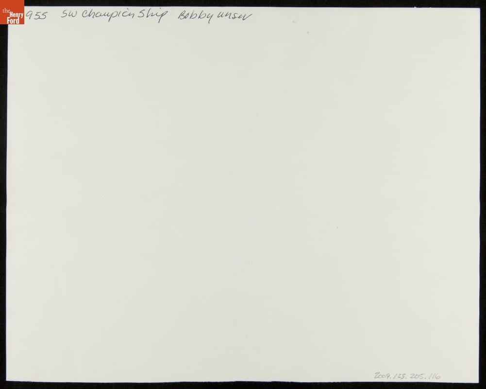 Bobby Unser earned a place among automobile racing's greats, having successfully competed in nearly every form of the sport. The racing career of this three-time Indianapolis 500 winner and 13-time Pikes Peak International Hill Climb winner spanned more than 30 years. This photograph -- only one of thousands donated by Bobby and Lisa Unser to The Henry Ford -- helps to document his career.