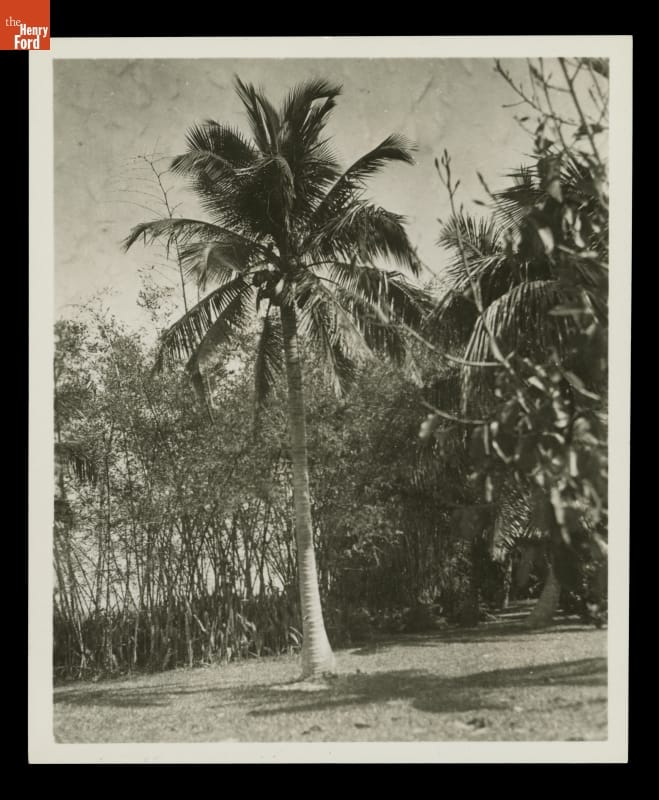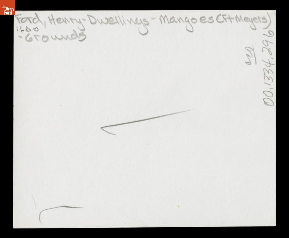 In 1916, Henry and Clara Ford purchased "The Mangoes." The Fort Myers, Florida, property adjoined the winter home of Thomas Edison -- Henry's friend and mentor. The Fords' estate featured a Craftsman bungalow and grounds lush with citrus trees and tropical plants. This image shows the variety of plant life found at the Fords' winter retreat.